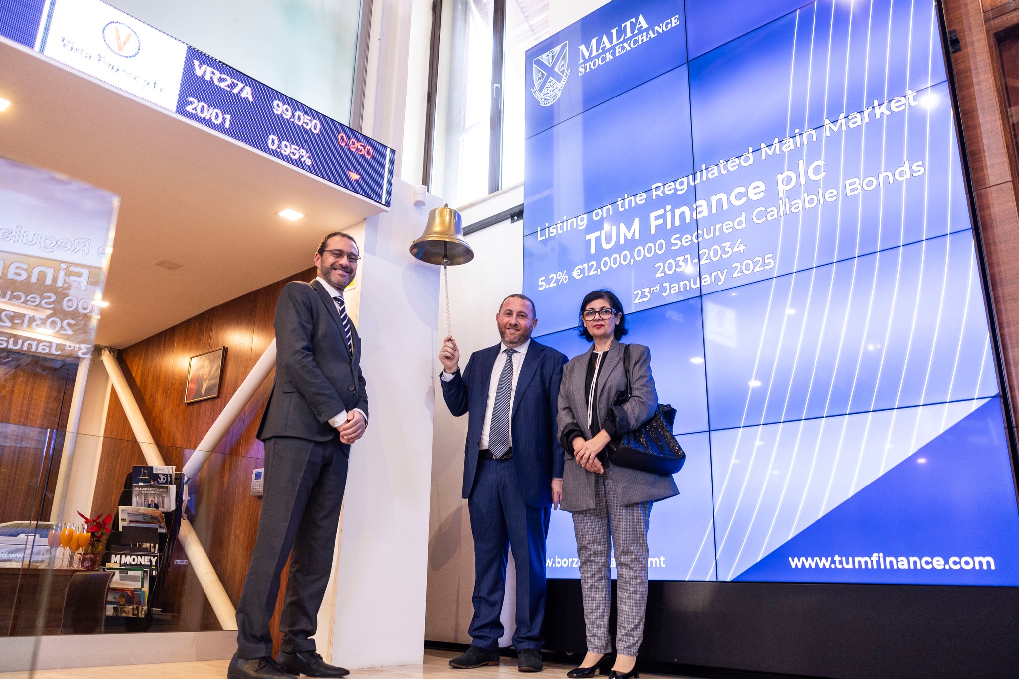 TUM Finance plc is delighted to announce the successful listing of our 5.2% €12,000,000 Secured Callable Bonds 2031-2034 on the Malta Stock Exchange, marked by a memorable Ringing of the Bell ceremony on 28th November 2024.